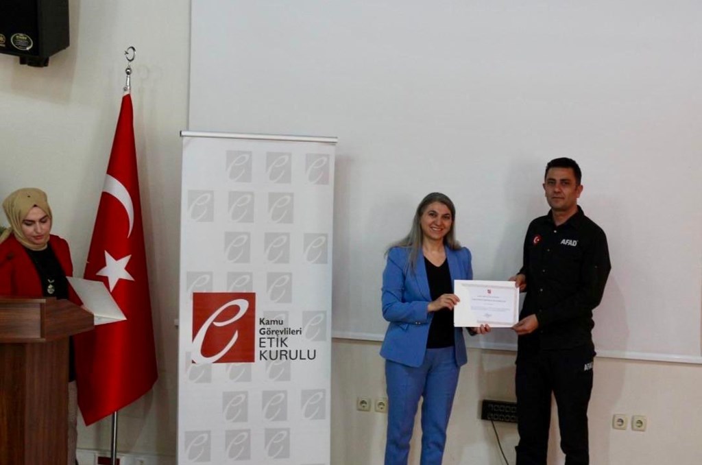Açış konuşmasını Kurul Üyemiz Prof. Dr. Erkan İBİŞ’in yaptığı eğitim, AFAD Başkanlığı merkez ve taşra teşkilatında görev yapan 28 personelin katılımıyla gerçekleşmiş olup, katılımcılara etik eğitici belgeleri verilmiştir.