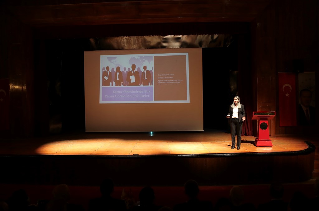 Kamu Görevlileri Etik Kurulu Başkanı ve Kurul Üyelerinin katılımı ile 2021 yılında başlattığımız bölgesel etik konferanslarının devamı olan ve bu kez Çorum Valiliğinin ev sahipliğinde düzenlenen “Kamu Yönetiminde Etik ve Etik Davranış İlkeleri” konulu etik konferansı, 3/11/2022 tarihinde Çorum ilinde görev yapan 420 kamu görevlisinin katılımıyla gerçekleştirildi. Çorum Belediye Başkan Yardımcısı Sayın Lemzi ÇÖPLÜ, Çorum Valisi Sayın Mustafa ÇİFTÇİ ve Kurul Başkanımız Sayın Zerrin GÜNGÖR’ün açış konuşmaları sonrası Ankara Üniversitesi Öğretim Üyesi Prof. Dr. Sayın İnayet AYDIN’ın sunumu ile konferans tamamlandı.