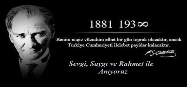 Yaşadığımız coğrafyada ve dünyada ilkeleri, fikirleri, eserleri ile yaşayan Cumhuriyetimizin Kurucusu, Kurtuluş Savaşımızın Başkomutanı Gazi Mustafa Kemal Atatürk ün 10 Kasım 1938 tarihinde aramızdan ayrılmasının hüznünü bir kez daha yaşıyoruz.