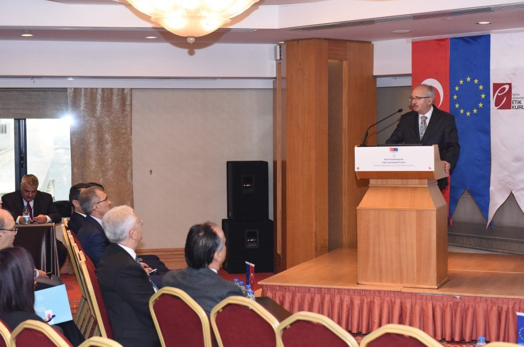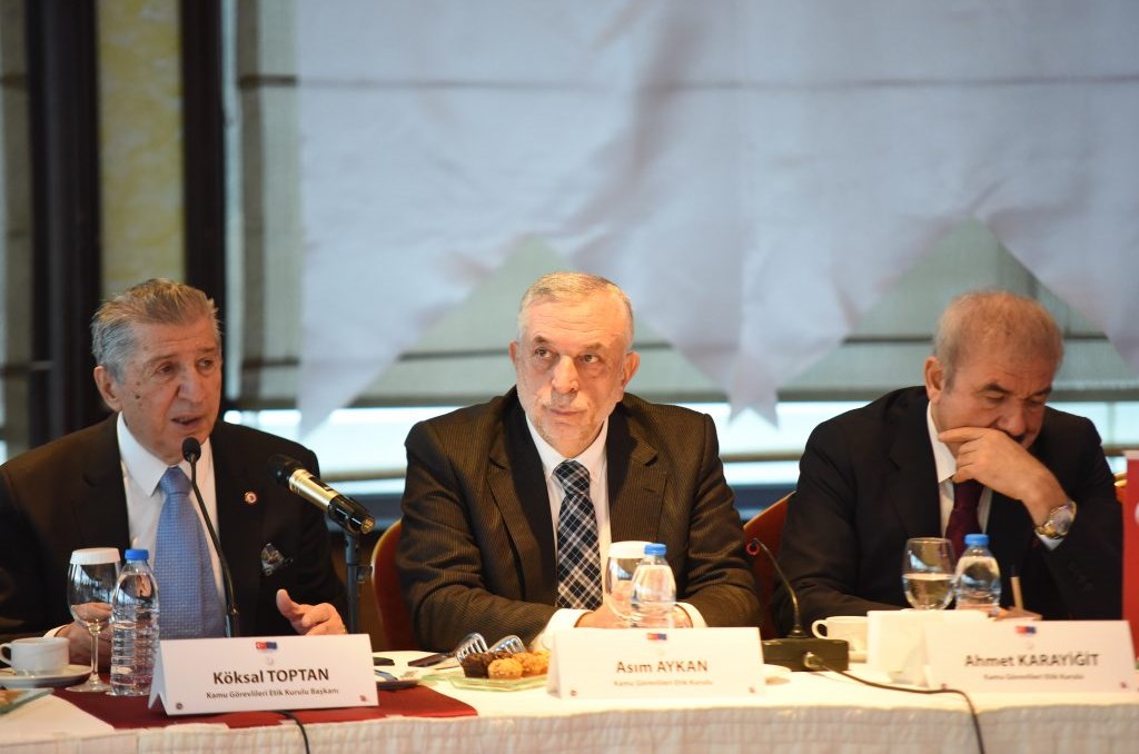 Kamu Görevlileri Etik Kurulu Başkanı Köksal TOPTAN : “Bu projenin en önemli bölümü karşılıklı görüşme şeklinde devam edecek olan, tartışmalarla güç kazanacak olan bölümdür. Bizim Avrupa Birliği desteği ile yürüttüğümüz proje yönetenlerle halkın arasında ciddi bir köprü kurarak çağın yükselen değerlerini kamuyla halkla paylaşmak, bölüşmek ve uygulamak şeklinde özetlenebilir. Büyükşehirlerde takılıp kalmamak, Anadolu’ya gitmek, halkla, yerel yöneticilerle bu konuları tartışıp onların katkılarını almak ve böylece projeyi sağlıklı bir şekilde yürütmeyi kararlaştırdık. Etik davranışın bir kültür haline gelmesini istiyoruz. Bunu bir vicdani muhasebe haline dönüştürmeliyiz”.
