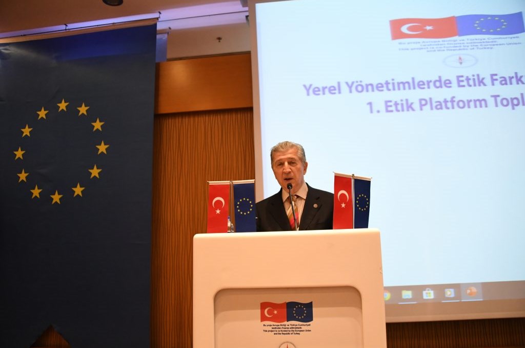 Etik Platformu’nun 9. su , katılımcılarla birlikte 1. si düzenlenen toplantımız 30 Mayıs 2019 Perşembe Günü Ankara Sheraton Hotel’de gerçekleştirilmiştir. Söz konusu toplantı, AB ortaklığı ile 16 Ocak 2019 tarihinde yürütülmeye başlanan “Yerel Yönetimlerde Seçilmiş ve Atanmış Kamu Görevlilerinin Etik Farkındalığının Artırılması Projesi” çerçevesinde proje amaçlarını ve aktivitelerini ve yerel yönetimler konusundaki uygulamaları değerlendirmek amacıyla düzenlenmiştir.